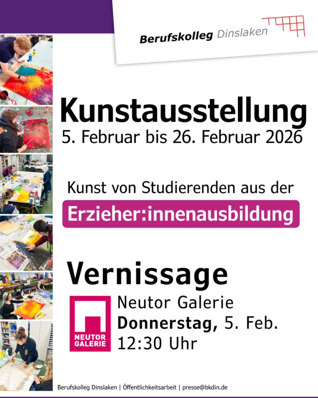 Erste Ergebnisse der Kurse sollen im Rahmen der Veranstaltung BKultur am 4. April der Öffentlichkeit vorgestellt werden. Das Berufskolleg Dinslaken bedankt sich herzlich bei den Unterstützern, ohne die die vorgestellten Projekte in dieser Form nicht möglich wären.