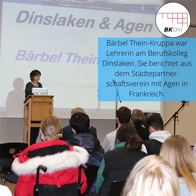 Auch Bärbel Thein-Kruppa, ehemalige Lehrerin am Berufskolleg, die sich im Dinslakener Städtepartnerschaftsverein engagiert, sieht die Europäische Union als Friedensprojekt und blickt zurück auf langjährige Partnerschaften der Stadt Dinslaken mit den Städten Argen in Frankreich und Arat in Israel. Von diesen guten Beziehungen profitieren auch die Schüler/-innen und Lehrer/-innen. Austauschtreffen, gemeinsame Projekte und Praktika in der fremden und dann doch so nahen Kultur und Arbeitswelt eines anderen Landes – das erfordere Mut und schaffe Kontakte von Mensch zu Mensch, die unabdingbare Grundlage seien für ein friedliches Miteinander der europäischen Staaten.