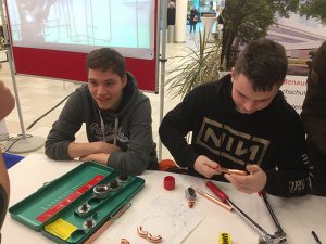 Wissen und Kompetenzen Neben dem Fachwissen, welches durch den Unterricht vermittelt wird, schulen wir auch die Methoden-, Sozial- und Selbstkompetenz. So üben wir u. a. in simulierten Beratungsgesprächen eine gelungene Kommunikation mit Kunden. Zu dem umfangreichen theoretischen Unterricht gehören auch Projekte im schuleigenen Labor. Darüber hinaus besuchen wir Fachmessen wie z. B. die SHK in Essen. Wir arbeiten eng mit der Überbetrieblichen Ausbildung (ÜBL) der Innung zusammen und sind unter anderem dort im Prüfungsausschuss tätig. |
