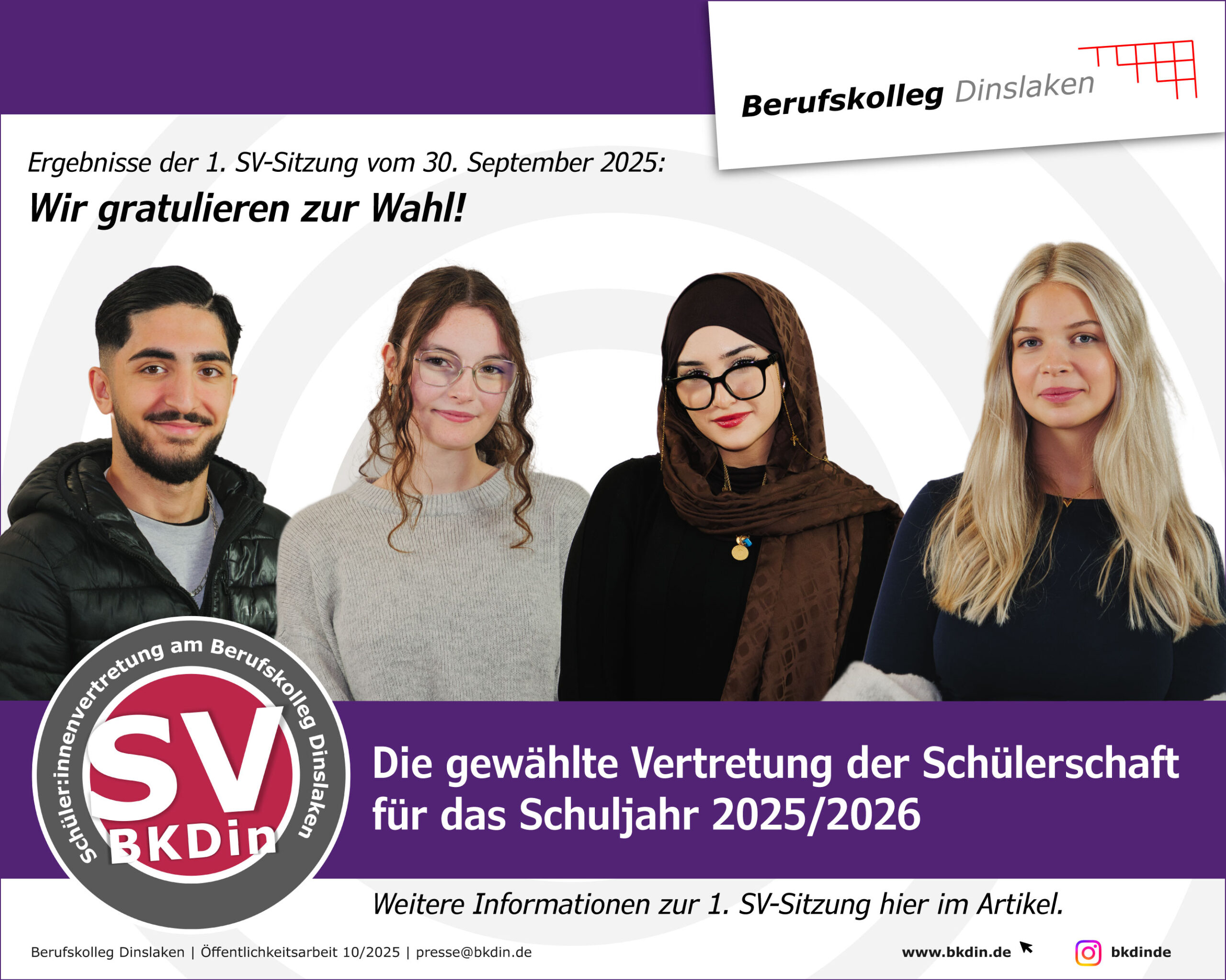 Wahl der Schülerinnen- und Schülervertretung am BKDin Die SV für das Schuljahr 2025/2026 Liebe Schülerinnen und Schüler, am 30. September 2025 trafen sich im Forum [ Zum vollständigen Artikel … ]